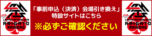 【“20th Anniversary Live ランティス祭り2019 A・R・I・G・A・T・O ANISONG”商品事前申込(決済)会場引き換えについて】