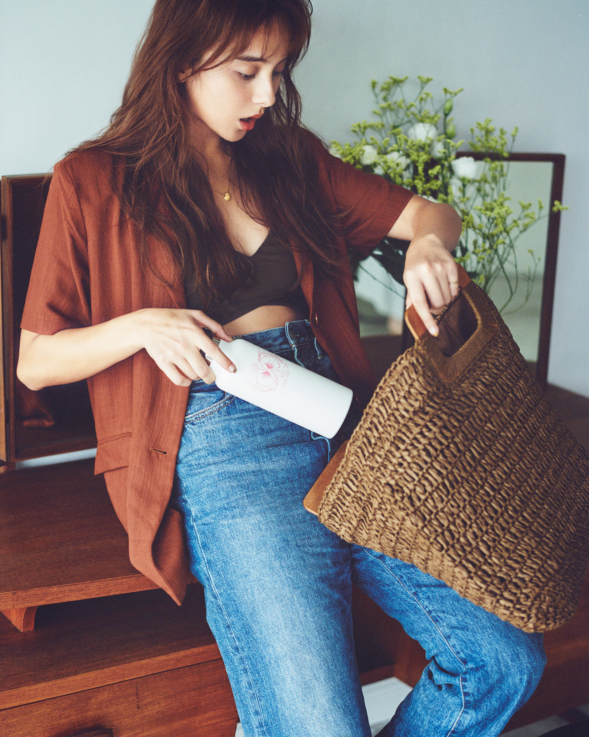 ボトムを同色でまとめればこんな大人な着こなしに。