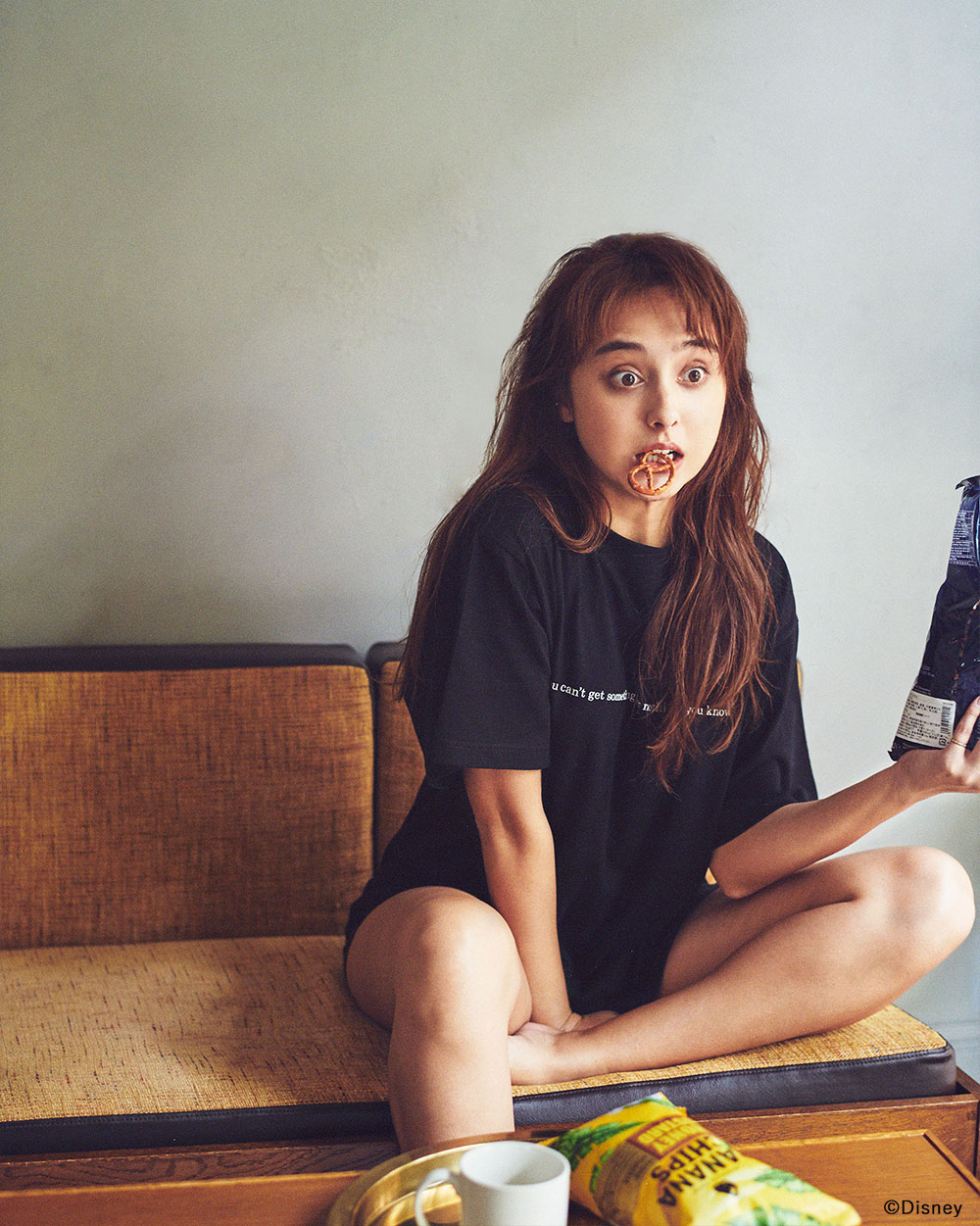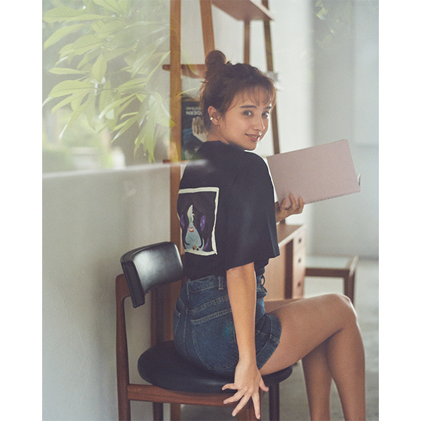 いつものショーパンに合わせたのはシックな黒Tシャツ。