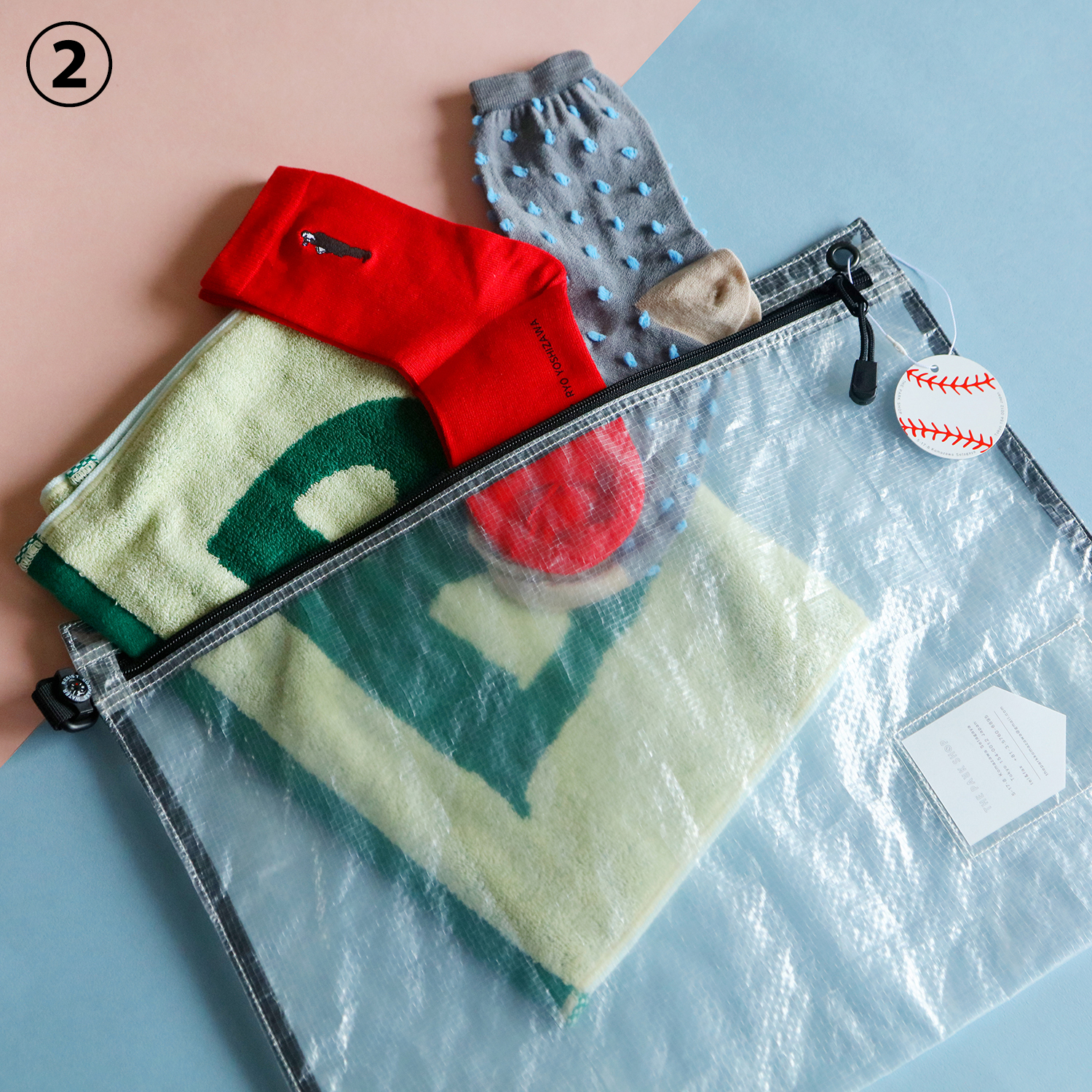 ラゲッジオーガナイザーと合わせて持ちたい、バスルーム用のポーチ。