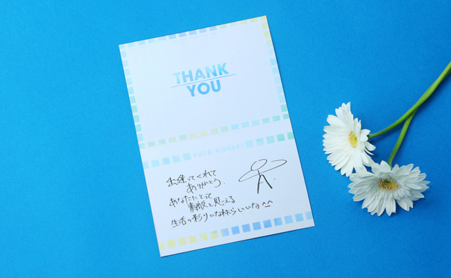こちらは「A!SMART」にてお買い物の際、好きなアーティストのオリジナルデザインのメッセージカードを有料オプションとして付けることができるサービスです。