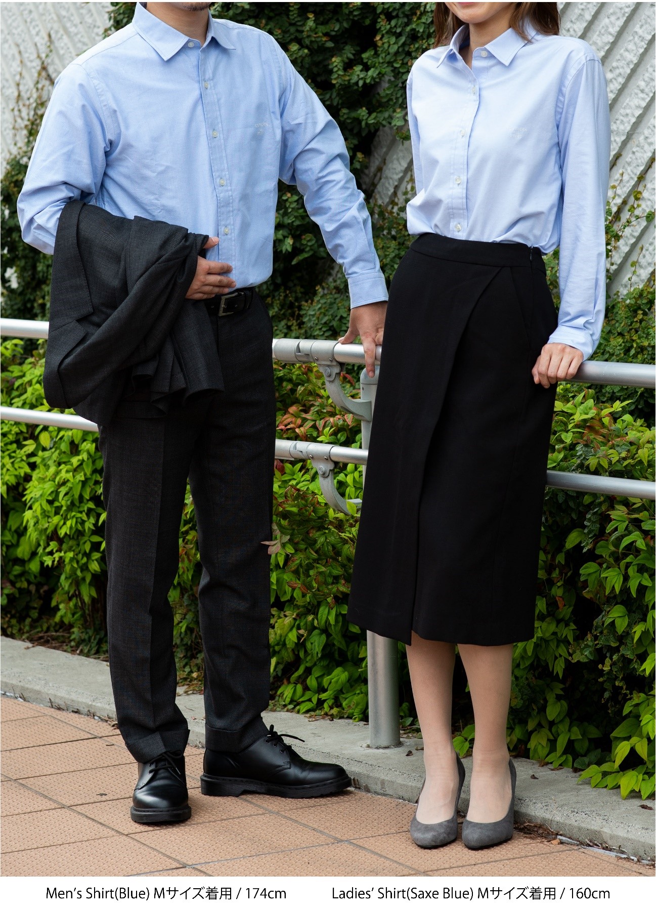 今回のシャツは、Men’s Shirt(White/Blue)・Ladies’ Shirt(White/Saxe Blue)の4種類。着用シーンを選ばない定番カラーのWhiteに加えて、メンズは爽やかなBlue、レディースは柔らかみのある上品なSaxe Blueをご用意いたしました。