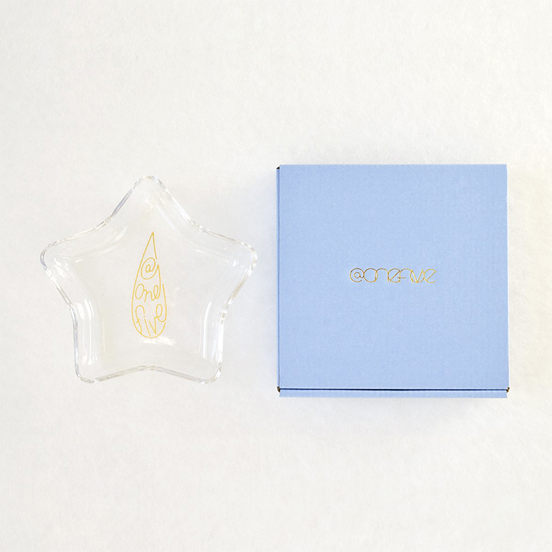“ぽちょん”とした雫モチーフの@onefiveロゴがプリントされた、星形の「ぽちょんトレイ」。