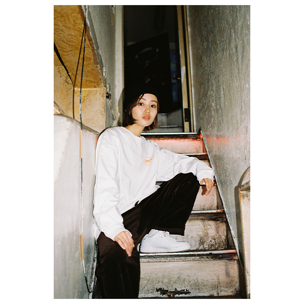 使いやすいホワイトのLong sleeve T-shirtは、Neon OrangeとNeon Greenの2色展開。
