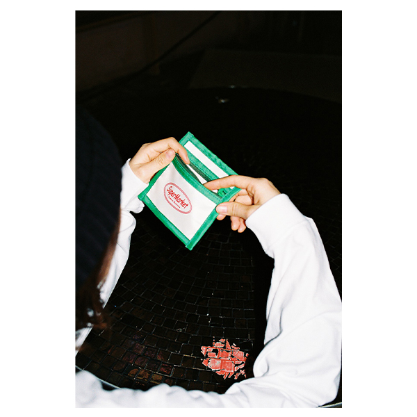 チケット入れやお財布としても便利なMini flat pouchは、Yellow×BlueとGreen×Creamの2カラー。