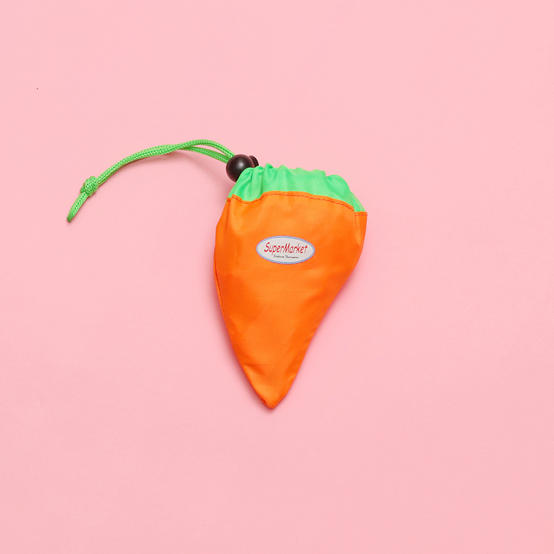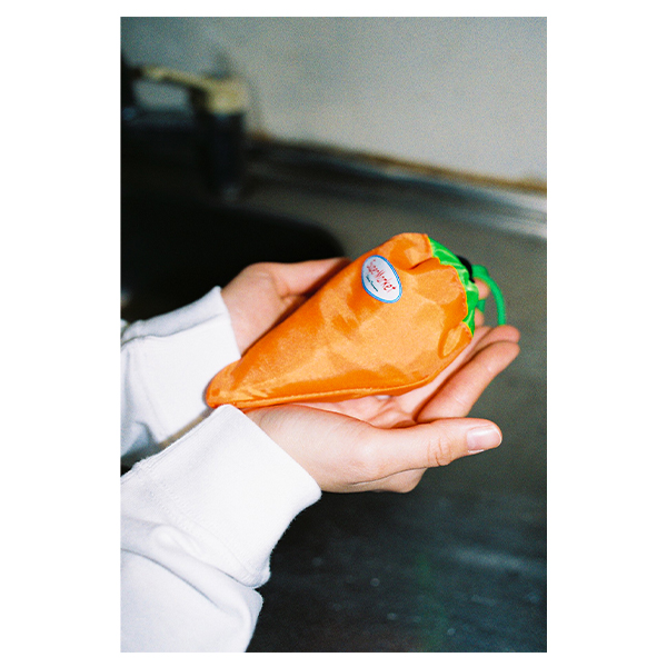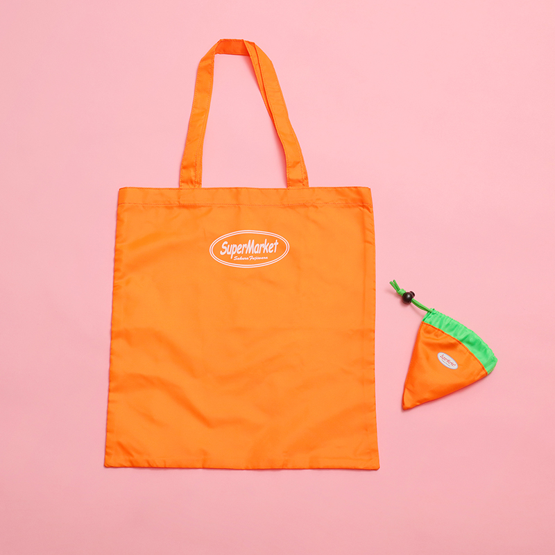 鮮やかなオレンジのBagは、たたむとにんじん型に。