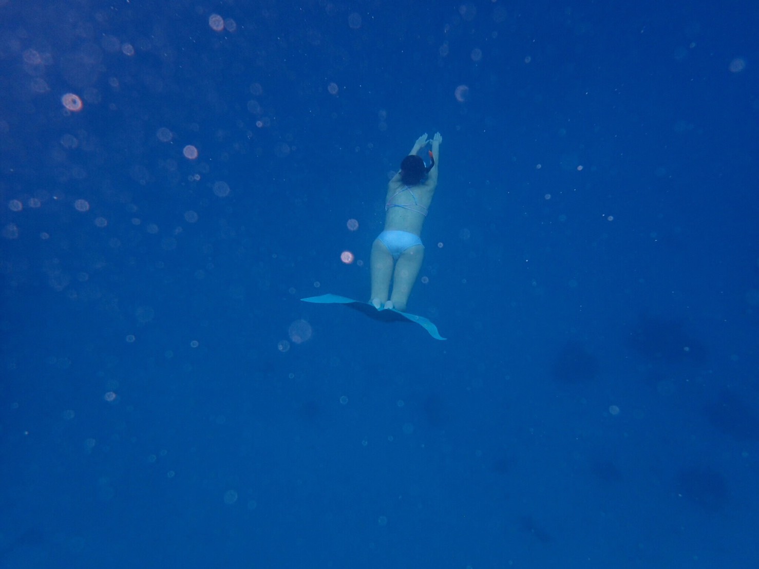 プライベートではダイビングやサーフィンを楽しむ無類のビーチガール。