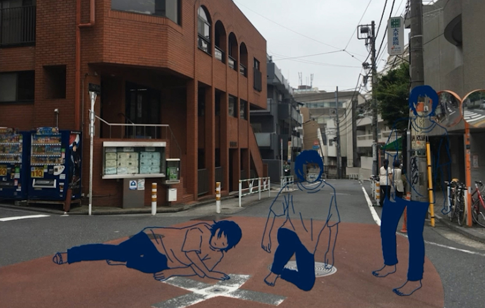 ですよね(笑)。このシュールなところが自分らしさですかね。街並みもイケイケすぎるところより、共感できる場所であることが大事なんですよ。それがないと上手く描けないんです。ちなみに、この風景はミラーとちょっと安くなっている自動販売機に惹かれたんです。生活感があっていいですよね。渋谷にもこんな場所があってびっくりしました。