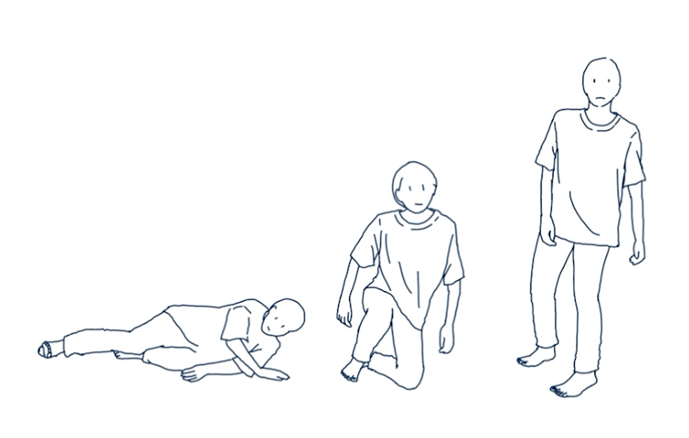 ——倒れてから立ち上がるまで、徐々に表情も変化していますね!