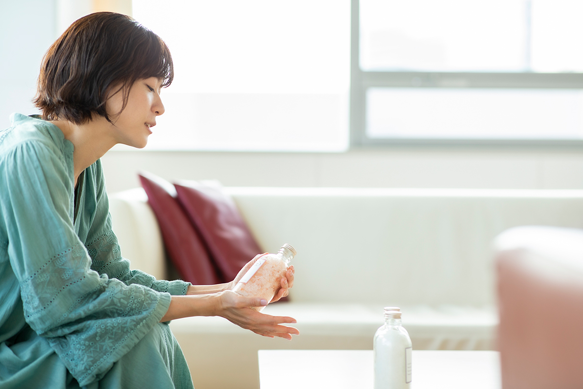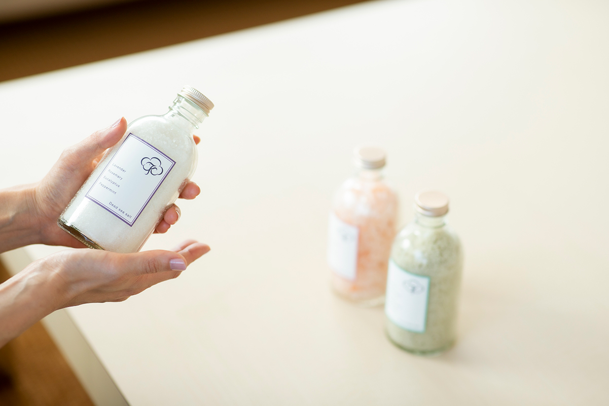 ペパーミントは冷えを温め、停滞を活性化させてくれる働きがあるので、頭の疲労感をすっきりさせてくれるし、死海の塩とのシンプルな組み合わせの「Relaxing」はディープな疲れを癒してくれると思います。