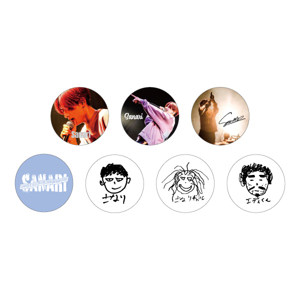 さなりがさまざまな表情を見せるA6サイズのステッカーは、好きな表情を切り取ってノートやPCに貼るのもおすすめです。 缶バッジは全7種類。ランダムでお届けします。 マイクを持って歌い上げるさなりをプリントしたスマホリングも要チェック!