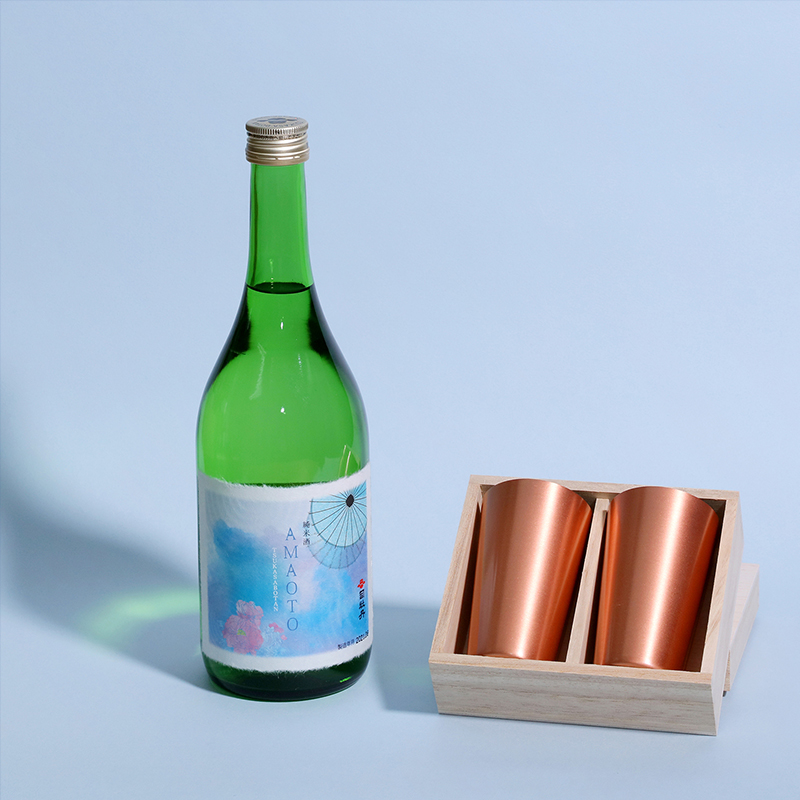 親子でも夫婦でも使える2つセットの「冷酒のための純銅ペアカップ」で飲めば、さらに味わいが引きたつ、ひんやりとした口当たりに。中川政七商店のロゴ刻印の桐箱にてお届けします。