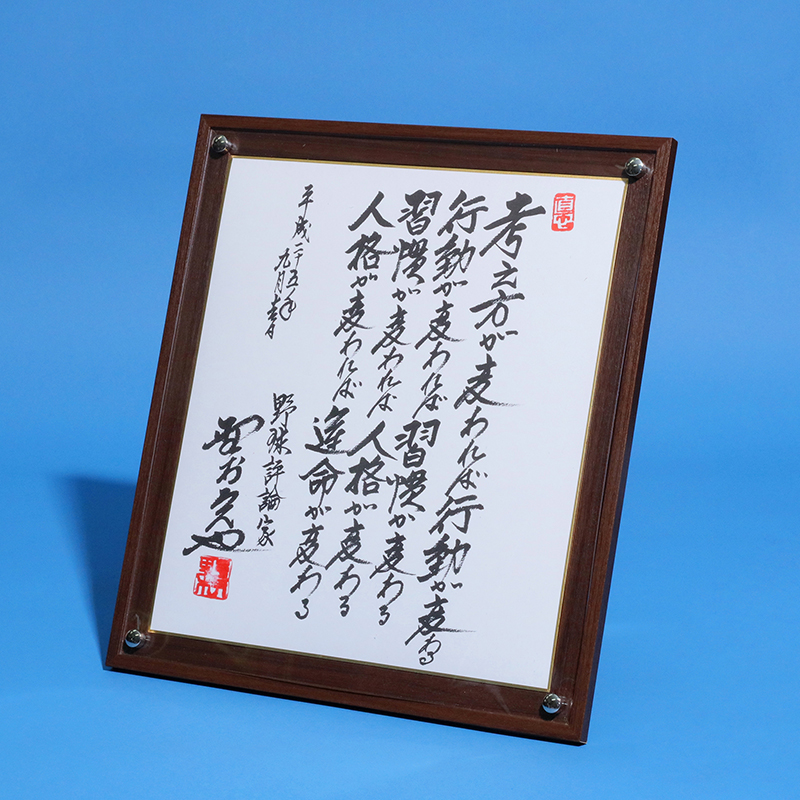 野村克也の野球哲学、人生哲学を感じる額装したサイン入り色紙。