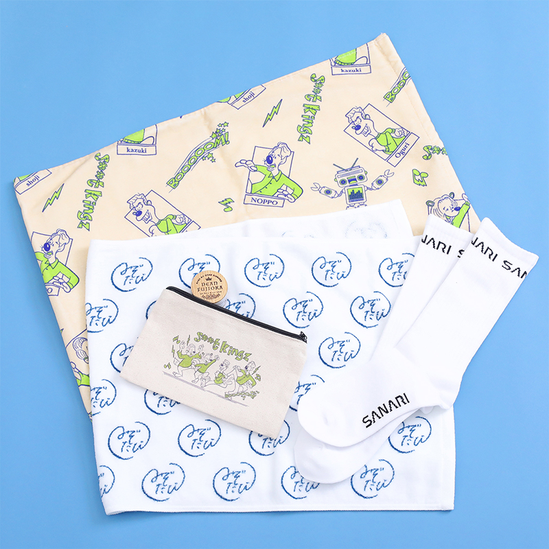 バスタオルより小さく、フェイスタオルより大きいs**t kingzのタオルは、旅行にぴったりなサイズ感。夏気分をアップする爽やかなカラーリングの「みぞたび」タオルもおすすめです。