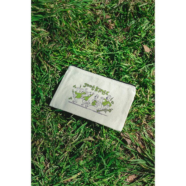 小物の整理整頓には、s**t kingzのコットンポーチの出番。ミントフレーバーのDEAN FUJIOKA「リップクリーム」をひとつ入れておけば、冷房の乾燥対策もばっちり。