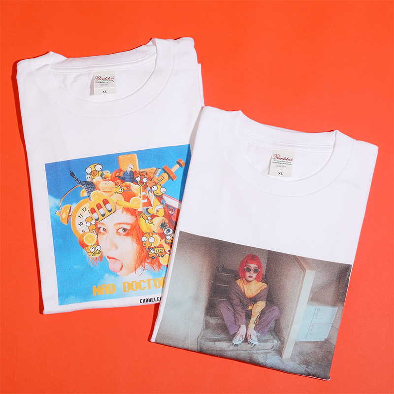 ルーズに着こなしたいプリントTシャツ2種に、MVでおなじみのキャラクターがデザインされたフェイスタオル、ロゴキーホルダーとステッカーがラインナップ。
