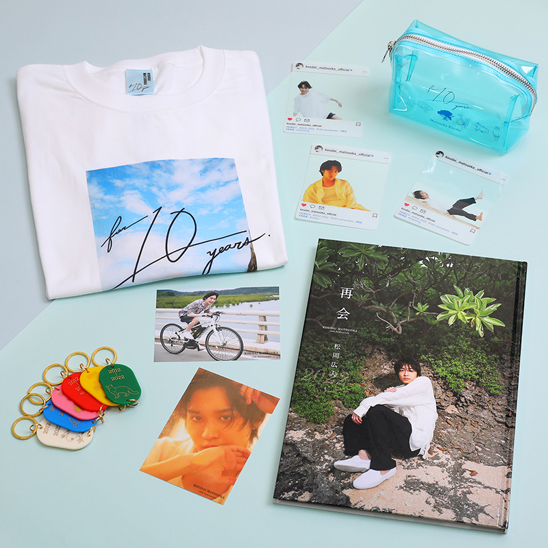 西表島撮影の写真のほか、お世話になった共演者・スタッフ総勢29名からのご寄稿・学生の頃よりともに多くの時間を過ごしてきた俳優の方々との鼎談・個人インタビューなどの企画たっぷりのアニバーサリーブック「再会」に、アザーカットを使ったフォトセットやクリアフォトカード、Tシャツなど、自然を感じる爽やかなグッズが揃いました。